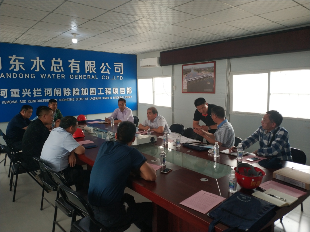 2020年6月1日,山東省水利廳總工程師、二級巡視員徐希進一行蒞臨郯城縣重興攔河閘除險加固工程現(xiàn)場調(diào)研指導(dǎo)工程防汛度汛工作。郯城縣水利局、河道局,山東水總重興閘項目部主要領(lǐng)導(dǎo)參與了調(diào)研工作。