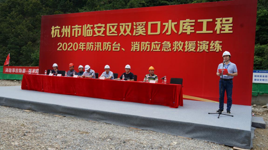 為進(jìn)一步增強(qiáng)杭州市臨安區(qū)雙溪口水庫(kù)工程全體人員防汛防臺(tái)和消防安全意識(shí),強(qiáng)化應(yīng)急預(yù)案保障措施的落實(shí),提高各參建單位應(yīng)對(duì)突發(fā)性洪水和火災(zāi)等事件的應(yīng)急能力,確保汛期施工人員生命財(cái)產(chǎn)安全,減少火災(zāi)事故災(zāi)害損失。6月12日上午,雙溪口水庫(kù)工程法人單位杭州魯潤(rùn)水電開(kāi)發(fā)有限公司組織各參建單位,開(kāi)展防汛防臺(tái)和消防應(yīng)急救援演練活動(dòng)。