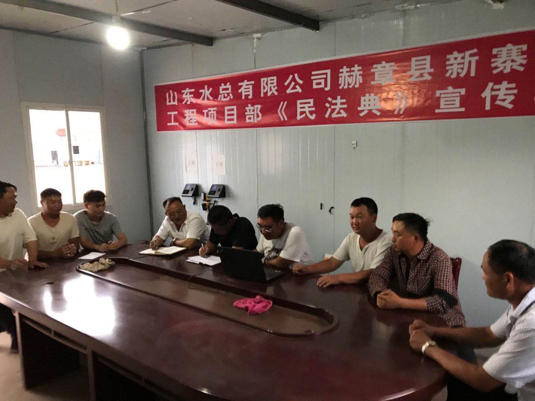 為響應(yīng)總公司法務(wù)與清收辦公室組織的“《民法典》宣傳月”活動(dòng), 7月23日晚上,泗水縣黃陰集大閘除險(xiǎn)加固工程項(xiàng)目經(jīng)理部在工地會(huì)議室召開(kāi)《民法典》學(xué)習(xí)宣貫會(huì)議、2020年7月25日,赫章縣新寨水庫(kù)工程項(xiàng)目部全體成員在會(huì)議室進(jìn)行《民法典》宣傳學(xué)習(xí)、曲阜2019年重點(diǎn)水利建設(shè)項(xiàng)目施工 一標(biāo)段在2020年7月28日進(jìn)行《民法典》學(xué)習(xí)、平塘縣擦耳巖水庫(kù)工程項(xiàng)目2020年7月29日進(jìn)行《民法典》學(xué)習(xí)、宣貫情況匯報(bào)如下: