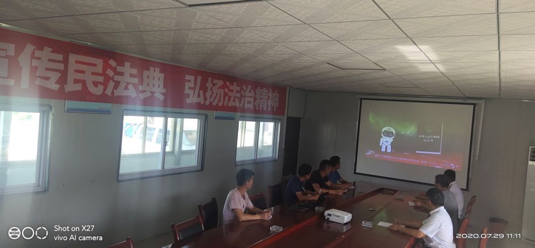 全體項(xiàng)目部管理人員及現(xiàn)場(chǎng)施工班組長(zhǎng)參加了宣貫會(huì)議,會(huì)議上對(duì)《民法典》的學(xué)習(xí)要求進(jìn)行宣貫及解讀。會(huì)上,參會(huì)人員共同學(xué)習(xí)了新民法。以投影儀投放及微信轉(zhuǎn)發(fā)的形式進(jìn)行了系統(tǒng)的學(xué)習(xí),通過(guò)這次集體學(xué)習(xí)提高了項(xiàng)目部全體人員的法治意識(shí)。