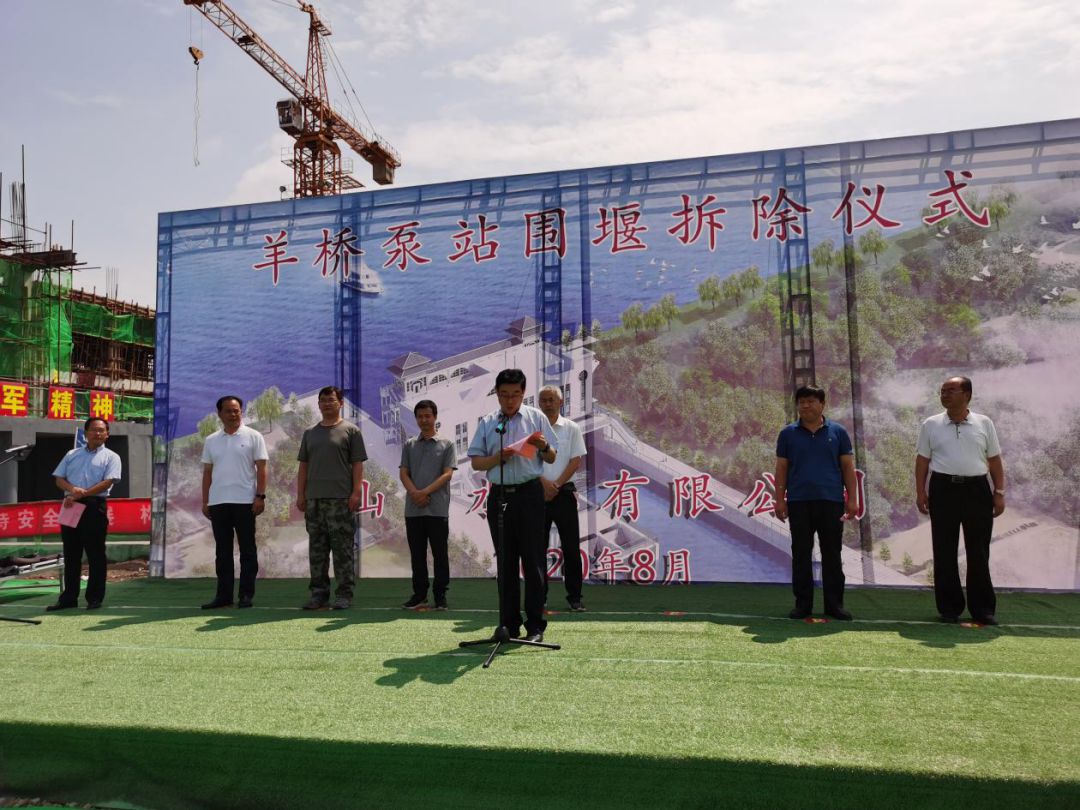 8月2日上午,羊橋泵站圍堰拆除儀式舉行。羊橋泵站圍堰拆除,是小清河防洪綜合治理工程(濰坊段)主體工程全線投入使用的標志,它的建成使用,為羊口鎮(zhèn)區(qū)防汛防潮排澇奠定了堅實基礎(chǔ),公司董事長刁望利出席了活動。