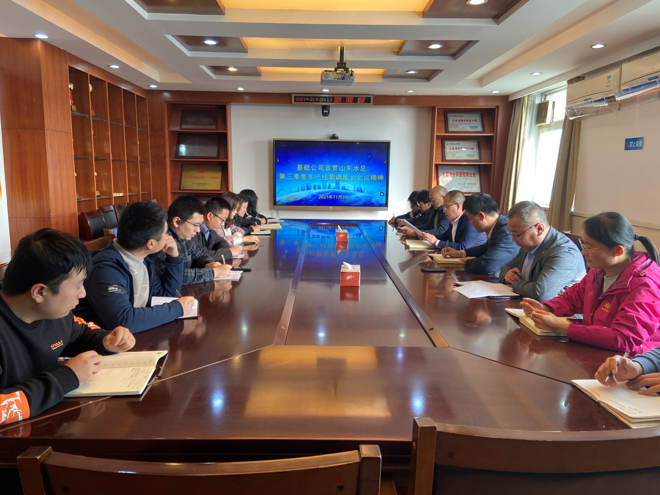 11月3日下午,基礎(chǔ)工程有限公司在七樓會(huì)議室召開第三季度生產(chǎn)經(jīng)營調(diào)度會(huì)議暨宣貫會(huì)議。總經(jīng)理朱兆同主持會(huì)議并講話,公司駐濟(jì)人員參加了會(huì)議。