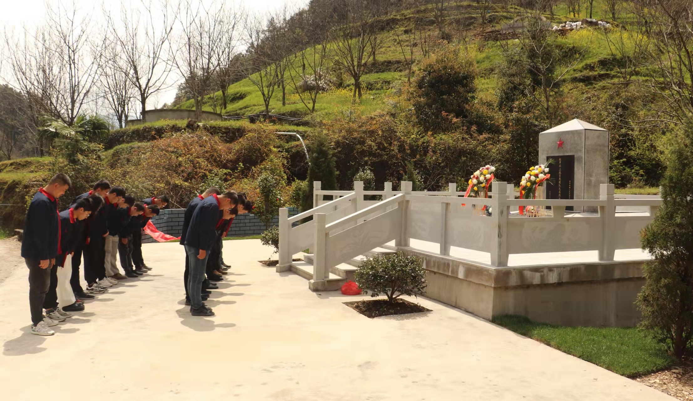 3月30日,突擊隊成員來到項目駐地清涼峰鎮(zhèn)梓鵬塢的紅軍北上抗日先遣隊無名烈士墓。面對著革命英雄的墓碑,隊員們心情激動,思緒萬千。通過瞻仰烈士墓碑、敬獻鮮花、鞠躬默哀等方式,祭奠長眠于此的革命先烈。