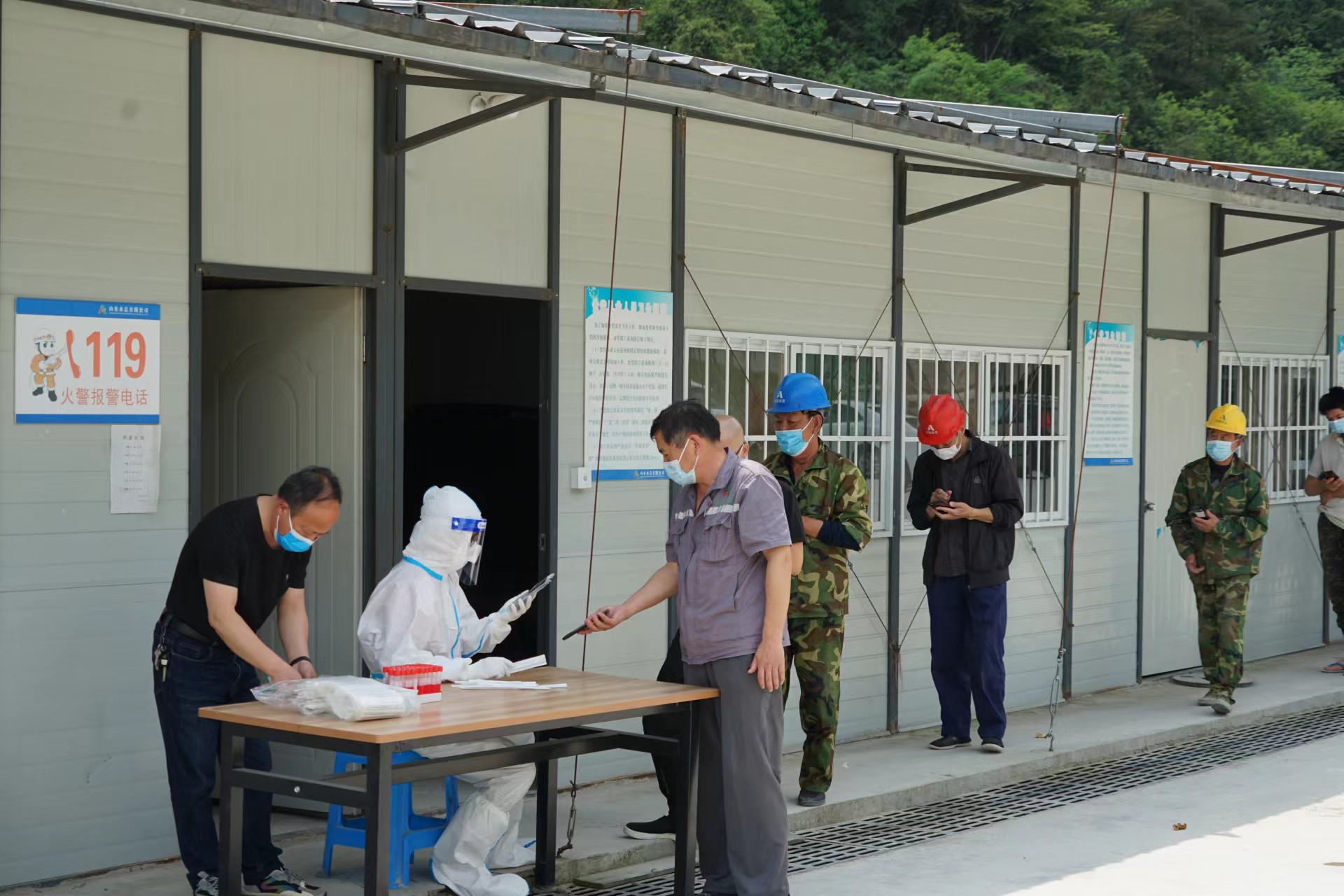 當(dāng)前,全國疫情呈現(xiàn)反彈態(tài)勢,疫情防控形勢異常嚴(yán)峻。為有效管控疫情傳播風(fēng)險(xiǎn),落實(shí)疫情防控主體責(zé)任,4月12日,杭州魯潤公司邀請項(xiàng)目駐地清涼峰鎮(zhèn)衛(wèi)生院醫(yī)護(hù)人員,到雙溪口水庫項(xiàng)目部對全體參建人員進(jìn)行核酸檢測,確保應(yīng)檢盡檢、全員覆蓋,筑牢建筑工地疫情防控安全網(wǎng)。醫(yī)護(hù)人員來工程現(xiàn)場核酸檢測,不僅免去了項(xiàng)目人員到醫(yī)院排隊(duì)的不便,更大程度的節(jié)約了時(shí)間,避免影響正常施工。