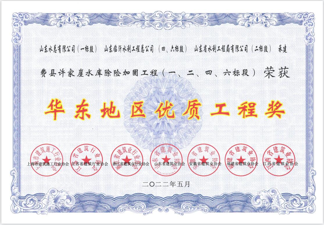 近日,公司承建的費(fèi)縣許家崖水庫除險(xiǎn)加固工程榮獲2021年度“華東地區(qū)優(yōu)質(zhì)工程獎(jiǎng)”;泗水縣泗河黃陰集大閘除險(xiǎn)加固工程榮獲2020-2021年度“山東省優(yōu)質(zhì)結(jié)構(gòu)工程獎(jiǎng)”。榮獲這兩個(gè)獎(jiǎng)項(xiàng),是公司在省級(jí)質(zhì)量獎(jiǎng)項(xiàng)方面的又一次突破。在工程創(chuàng)優(yōu)上,公司始終堅(jiān)持以企業(yè)發(fā)展為核心,踐行“干一個(gè)工程,樹一塊豐碑”的質(zhì)量方針。