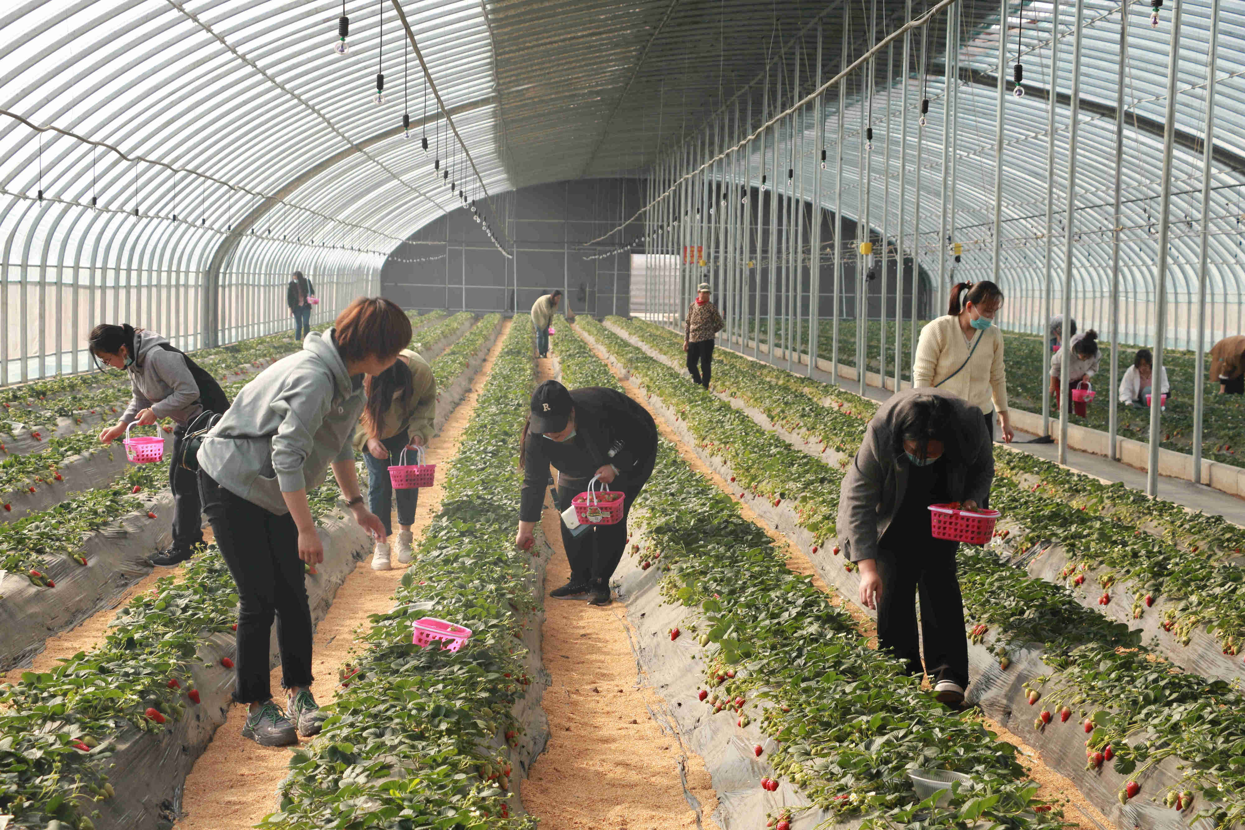 在草莓種植園里,女職工們盡情感受著春天的美好,心情格外愉悅。大棚里一片生機勃勃,翠綠的葉子、鮮紅欲滴的果實、芬芳的果香讓人感到春天即將到來的曼妙腳步。大家手提小果籃,沿著整齊的草莓田,化身快樂的小果農(nóng),一邊采摘品嘗,一邊相互交流,氣氛輕松活潑,體驗著采摘草莓、品嘗鮮果的樂趣,現(xiàn)場快樂與熱情四溢。