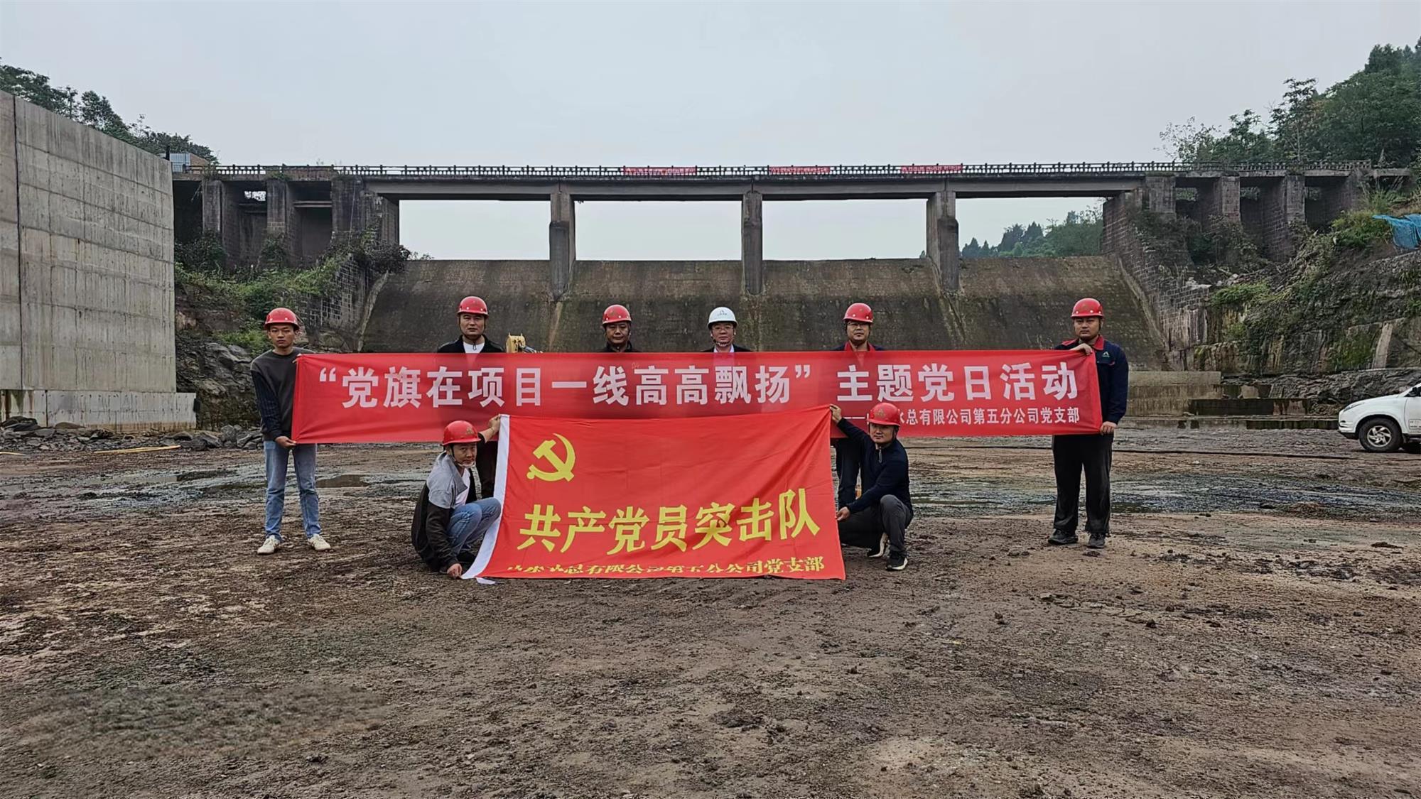 近日,第五分公司黨支部在資中縣兩河口水庫項(xiàng)目組織開展“黨旗在項(xiàng)目一線高高飄揚(yáng)”主題黨日活動(dòng)。