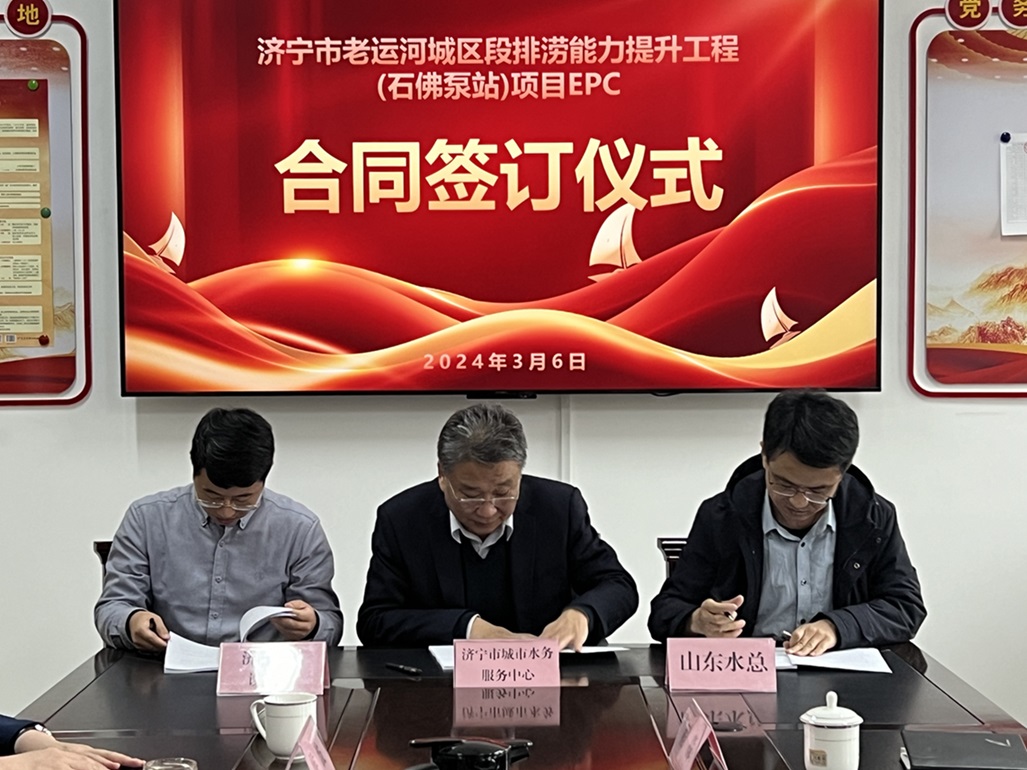 第七分公司濟(jì)寧市老運(yùn)河城區(qū)段排澇能力提升工程(石佛泵站)項(xiàng)目EPC合同簽訂儀式
