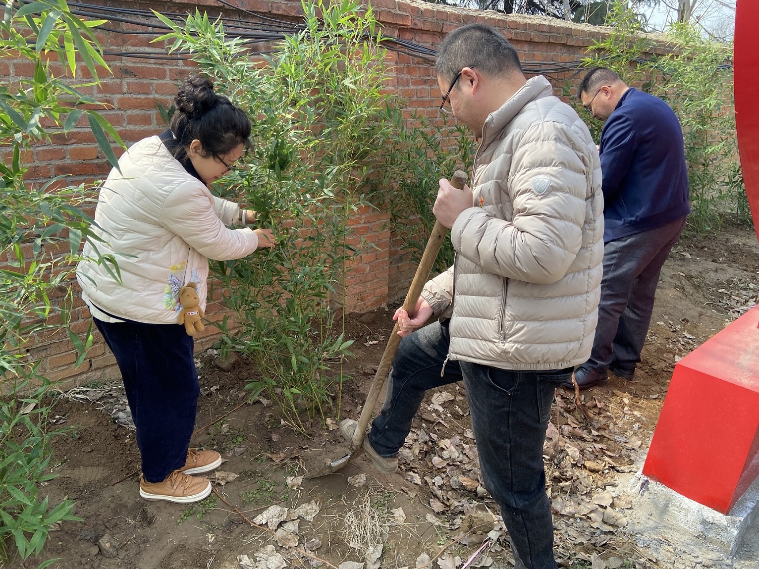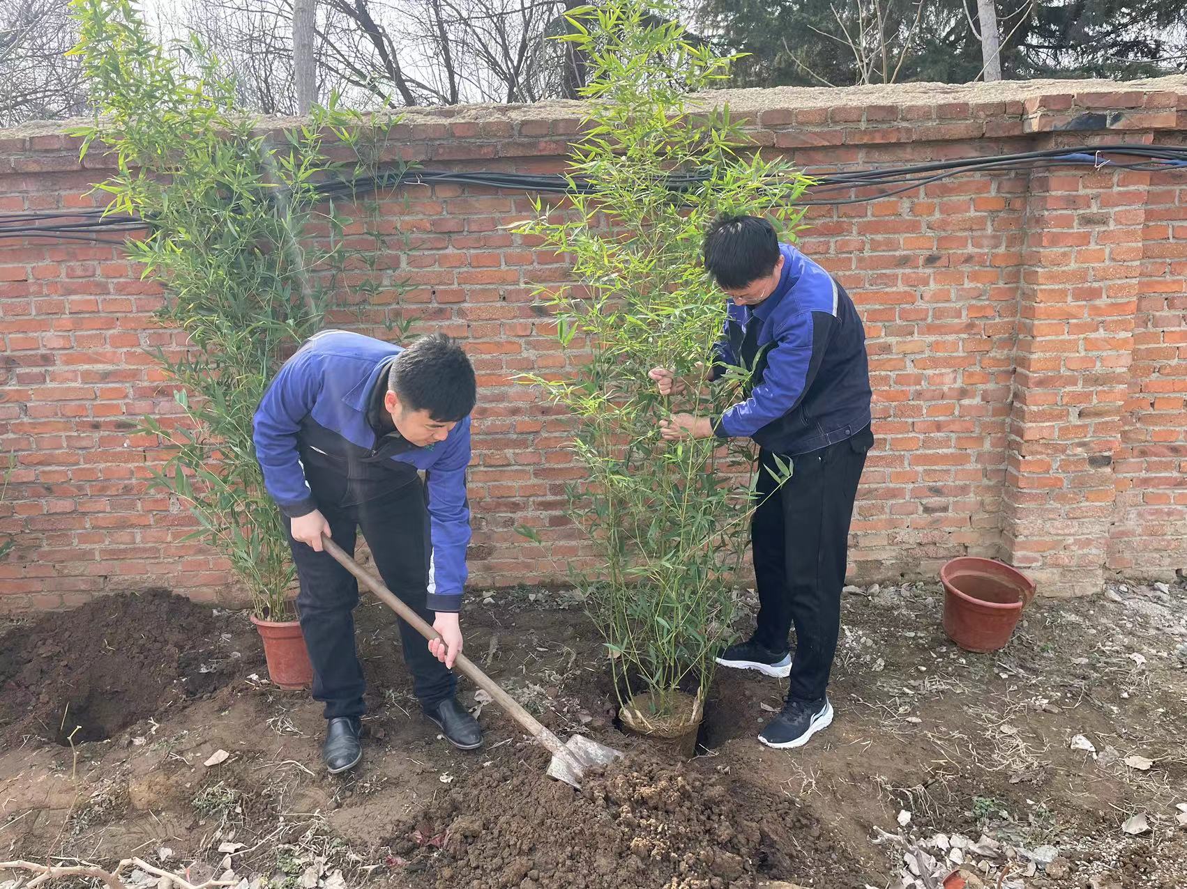曲阜駐地黨支部黨員、入黨積極分子熱情昂揚,大家分工協(xié)作,配合默契,揮鍬鏟土、扶樹填坑、踏土夯苗、培土澆水,道道工序規(guī)范嚴(yán)格,認(rèn)真細(xì)致地栽種每一棵樹苗,經(jīng)過辛勤勞作,為文化長廊增添了濃濃綠意。