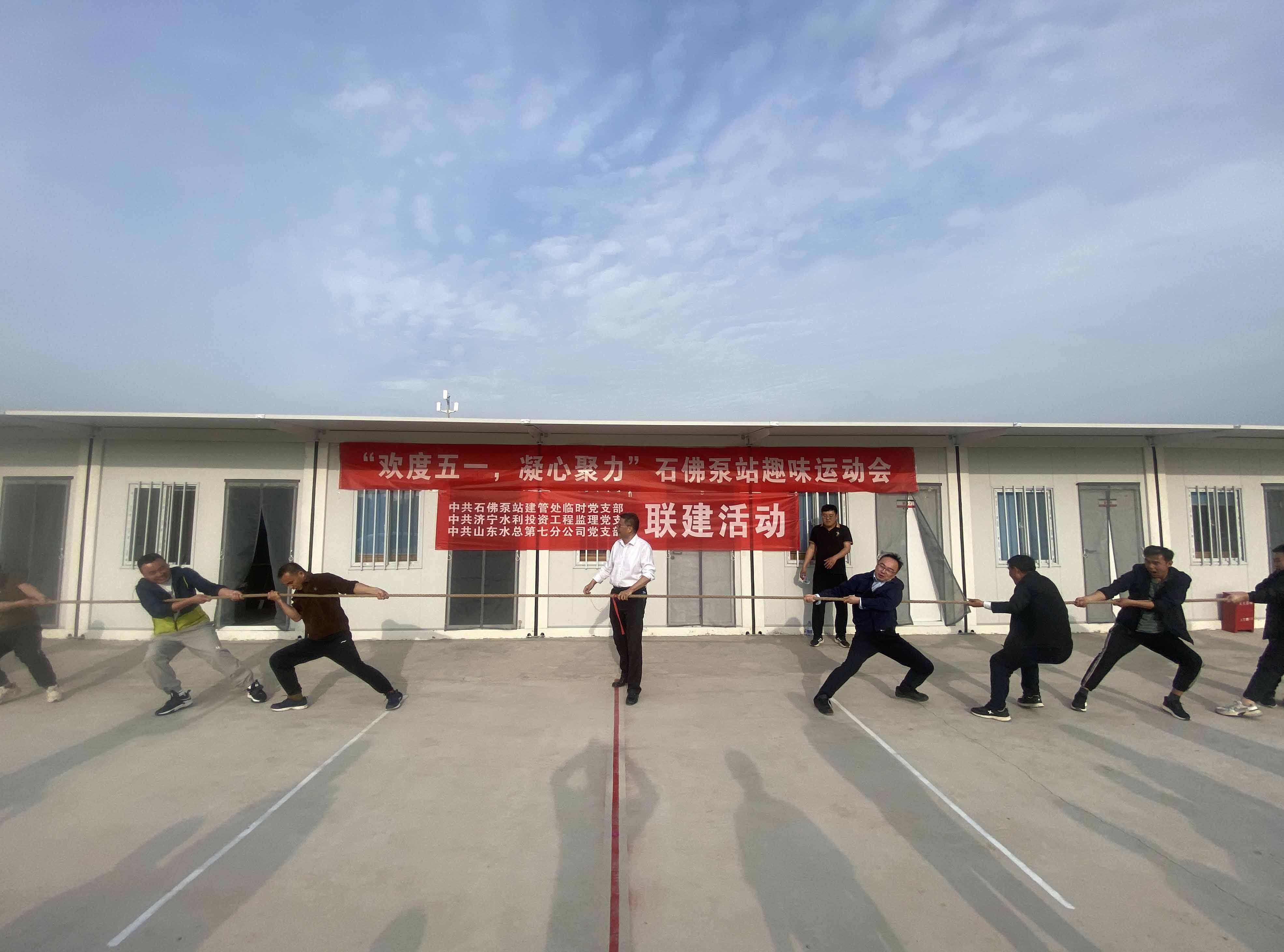 為慶?!拔逡弧眲趧?dòng)節(jié),豐富職工業(yè)余生活,4月30日,在第七分公司承建的濟(jì)寧石佛泵站項(xiàng)目現(xiàn)場(chǎng),項(xiàng)目部聯(lián)合業(yè)主、設(shè)計(jì)、監(jiān)理、檢測(cè)單位舉辦了一場(chǎng)“歡度五一,凝心聚力”趣味運(yùn)動(dòng)會(huì)。