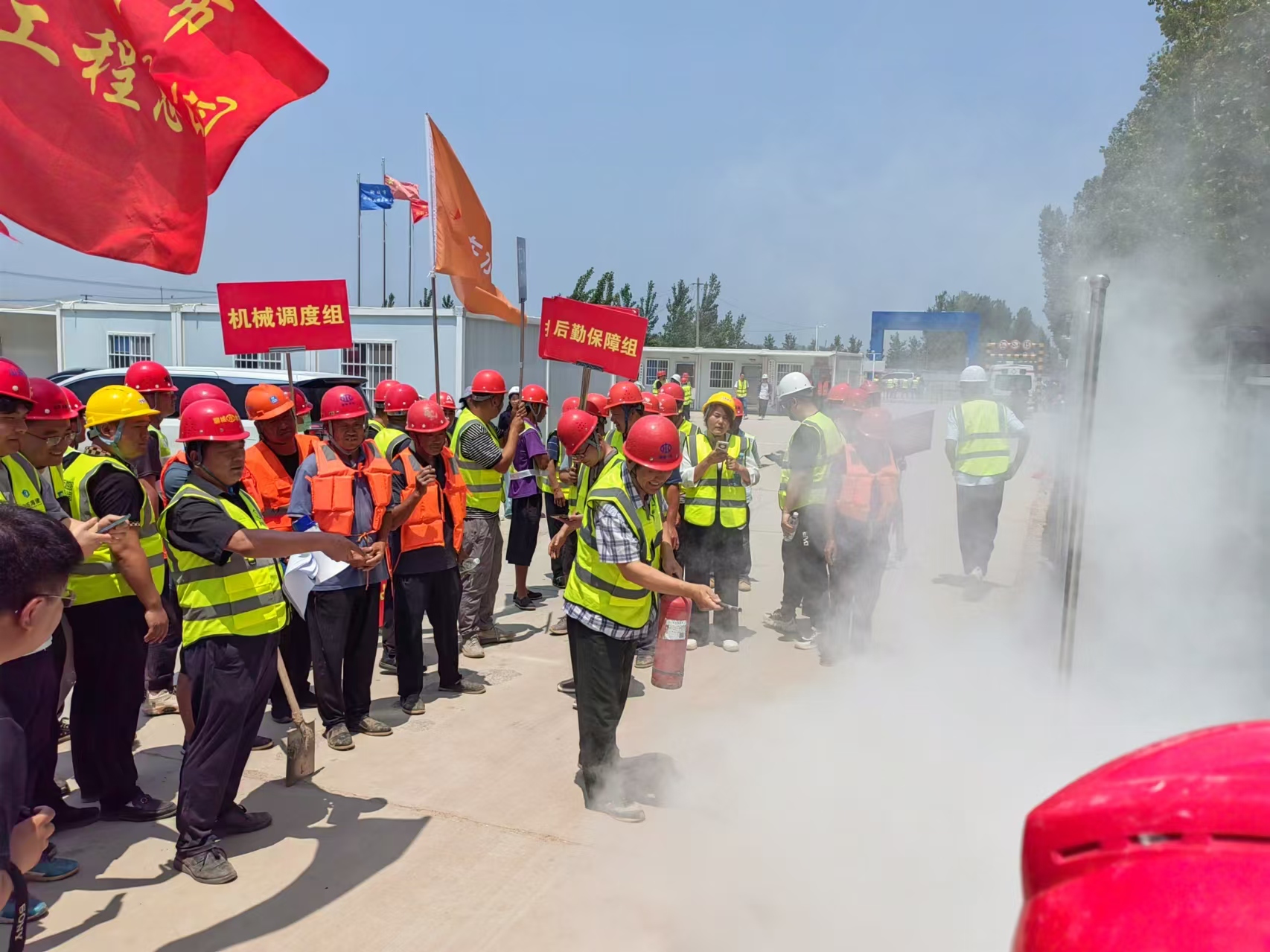 演練模擬區(qū)域性強(qiáng)降雨造成位山灌區(qū)三干渠水位持續(xù)上漲,堤防出現(xiàn)坍塌、決口等險(xiǎn)情,項(xiàng)目部迅速啟動(dòng)應(yīng)急預(yù)案,集結(jié)人員、器械、物資趕赴現(xiàn)場(chǎng),按照分工,各司其職,展開(kāi)搶險(xiǎn)作業(yè),有效控制了險(xiǎn)情擴(kuò)散;模擬了施工現(xiàn)場(chǎng)突發(fā)火情場(chǎng)景,搶險(xiǎn)人員迅速利用滅火器等器材對(duì)火源進(jìn)行撲救,及時(shí)進(jìn)行人員疏散,有效控制了火勢(shì)的蔓延和損害的進(jìn)一步擴(kuò)大。整個(gè)演練過(guò)程進(jìn)展順利,各小組配合默契、有條不紊,參與人員有序分工、通力合作,檢驗(yàn)了應(yīng)急預(yù)案和措施可行性,積累了實(shí)戰(zhàn)經(jīng)驗(yàn),切實(shí)增強(qiáng)各參建單位應(yīng)急避險(xiǎn)意識(shí),提高應(yīng)急響應(yīng)能力,達(dá)到預(yù)期效果。