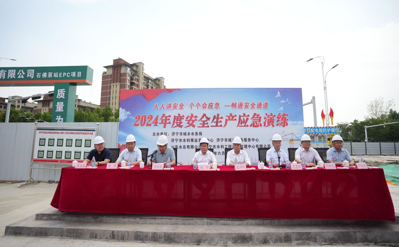 6月7日下午,濟(jì)寧市石佛泵站項(xiàng)目部聯(lián)合濟(jì)寧市城鄉(xiāng)水務(wù)局、濟(jì)寧市城市水務(wù)服務(wù)中心、濟(jì)寧市水利事業(yè)發(fā)展中心等單位開展安全生產(chǎn)應(yīng)急演練,公司黨委書記、董事長裴文晶、安全總監(jiān)郭法文受邀出席本次演練活動(dòng),演練共設(shè)置觸電事故、高處墜落、火災(zāi)、防洪度汛4個(gè)科目。