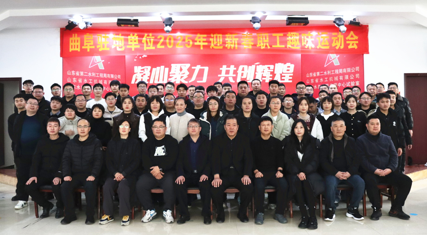 祥龍回首留勝景,金蛇起舞賀新程。為豐富干部職工文化生活,鼓舞廣大干部職工精神斗志,增強(qiáng)公司凝聚力和向心力,激發(fā)黨員干部干事創(chuàng)業(yè)的熱情,1月24日,山東水總駐曲各公司、部門(mén)全體干部職工喜氣洋洋、歡聚一堂、歡度佳節(jié)、共話(huà)友誼,舉辦了一場(chǎng)別開(kāi)生面、興趣盎然的“凝心聚力共創(chuàng)輝煌”2025年迎新春職工趣味運(yùn)動(dòng)會(huì)。