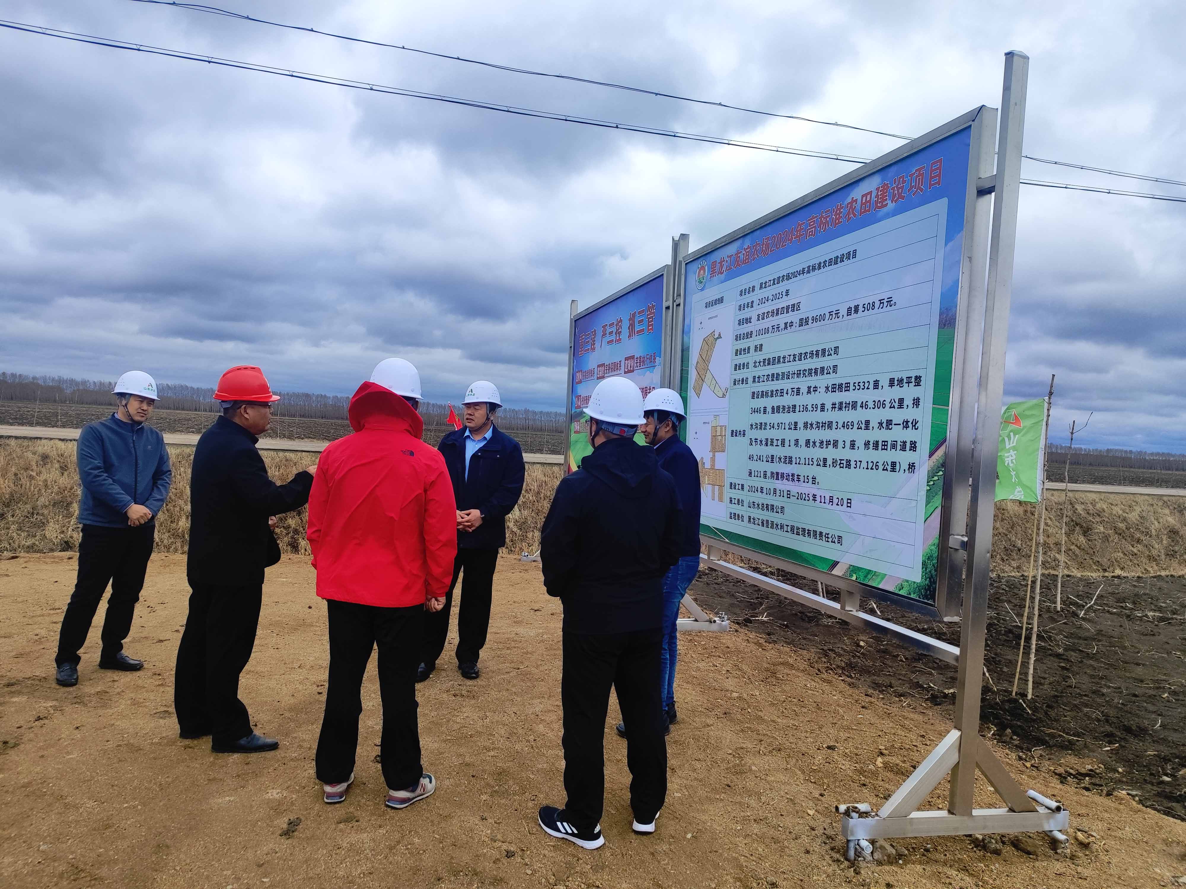 裴文晶一行首先來(lái)到黑龍江省糧食產(chǎn)能提升項(xiàng)目了解項(xiàng)目進(jìn)展,并同項(xiàng)目部一線人員進(jìn)行交流。隨后,調(diào)研組來(lái)到黑龍江友誼農(nóng)場(chǎng)2024年高標(biāo)準(zhǔn)農(nóng)田建設(shè)項(xiàng)目,同北大荒集團(tuán)黑龍江友誼農(nóng)場(chǎng)有限公司副總經(jīng)理樊慶華進(jìn)行會(huì)談。雙方對(duì)當(dāng)前項(xiàng)目的總體進(jìn)度、面臨的機(jī)遇和挑戰(zhàn)進(jìn)行了分析和研討,并對(duì)下一步如何加強(qiáng)合作進(jìn)行深入交流,展望兩家省級(jí)國(guó)有企業(yè)合作的未來(lái),努力發(fā)揮山東水總基礎(chǔ)建設(shè)和北大荒集團(tuán)農(nóng)業(yè)生產(chǎn)運(yùn)營(yíng)的優(yōu)勢(shì),打造出“1+1>2”的效果。