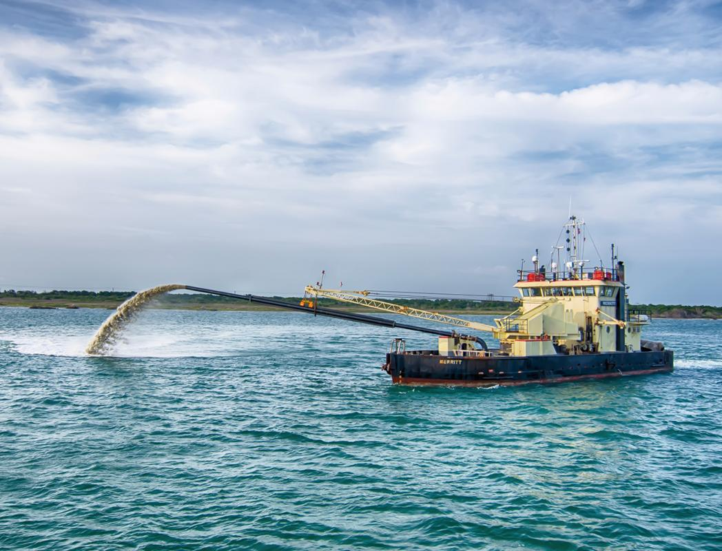 青島高新區(qū)海玉鹽場吹填:陸上吹填面積為1.67km3,吹填土方量約588萬m3。