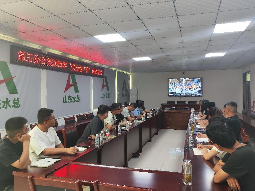 為大力推進(jìn)項(xiàng)目安全生產(chǎn)工作,提高全員安全意識(shí),迅速營(yíng)造“安全生產(chǎn)月”活動(dòng)氛圍。近日,第三分公司以郯城縣李莊灌區(qū)項(xiàng)目部作為主會(huì)場(chǎng)召開2025年“安全生產(chǎn)月”動(dòng)員會(huì)暨啟動(dòng)儀式,各項(xiàng)目部視頻參會(huì)。