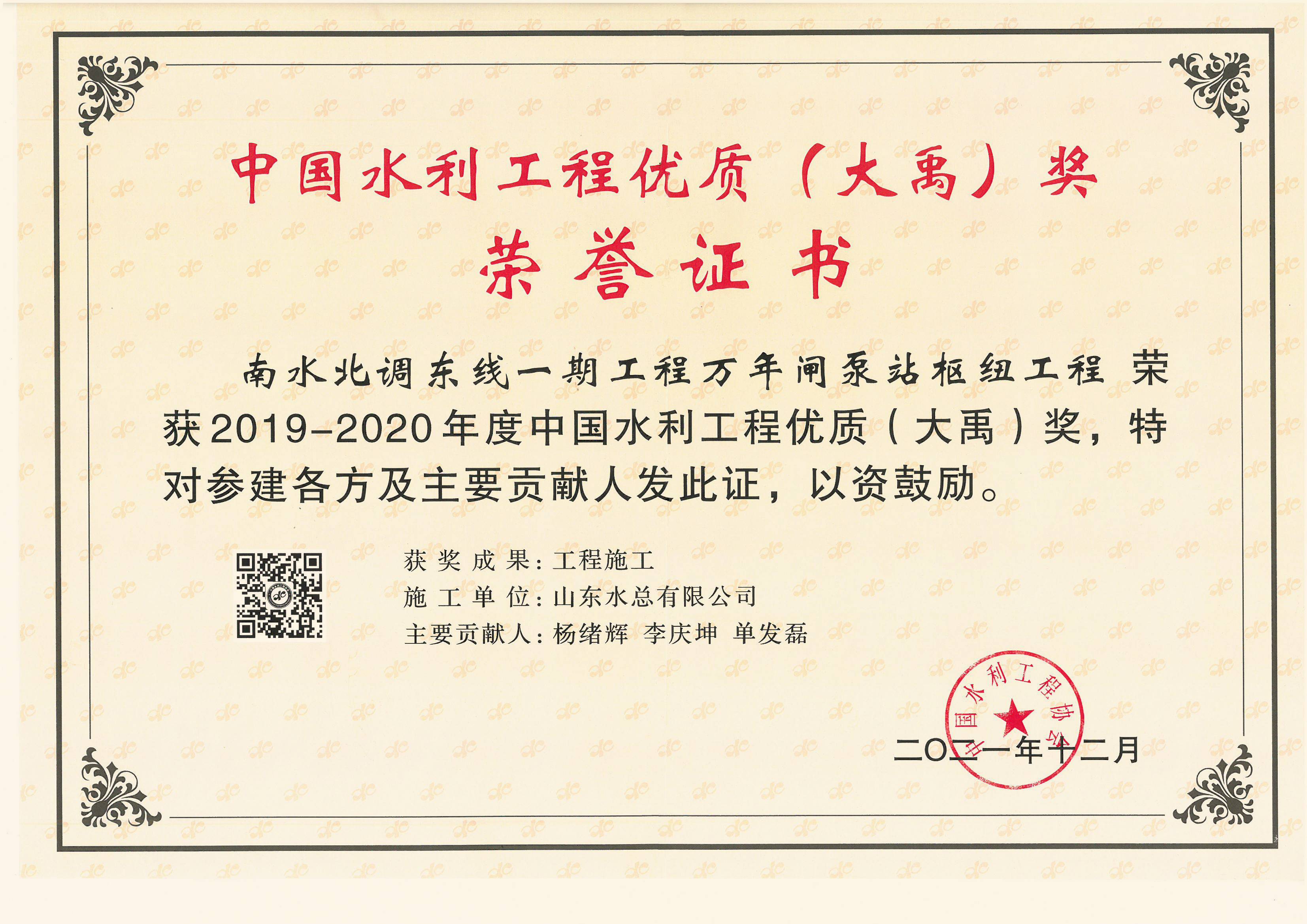 南水北調(diào)東線一期工程萬年閘泵站樞紐工程(大禹獎)