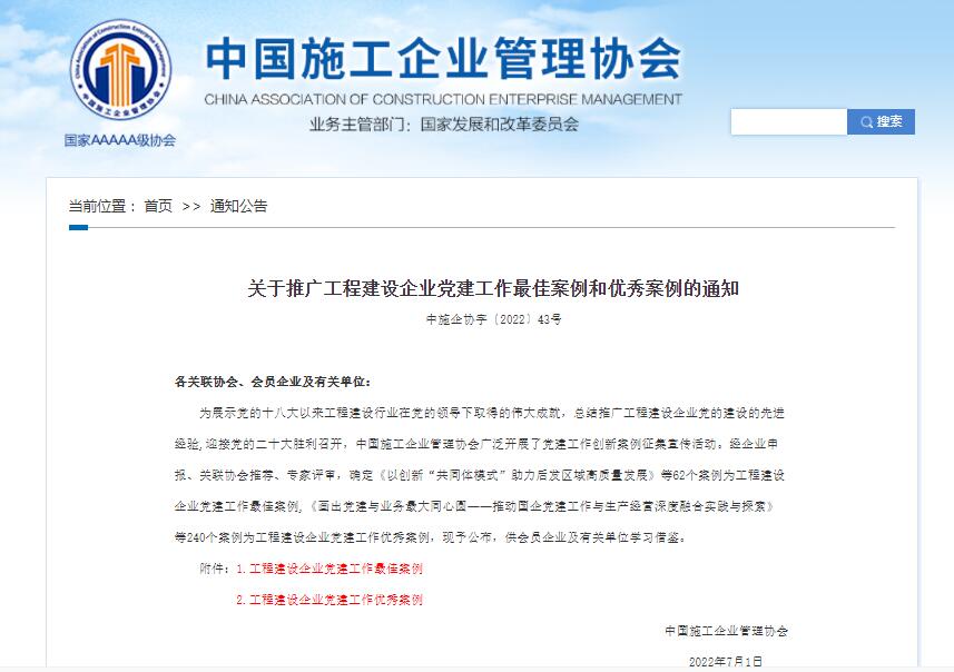 為展示黨的十八大以來工程建設(shè)行業(yè)在黨的領(lǐng)導(dǎo)下取得的偉大成就,總結(jié)推廣工程建設(shè)企業(yè)黨的建設(shè)的先進(jìn)經(jīng)驗,迎接黨的二十大勝利召開,近日,中國施工企業(yè)管理協(xié)會組織開展了工程建設(shè)企業(yè)黨建工作優(yōu)秀案例評審工作,山東水總有限公司第六分公司黨支部的《塑品牌抓活動促活力 切實提升黨建工作水平》案例獲評“工程建設(shè)企業(yè)黨建工作優(yōu)秀案例”。