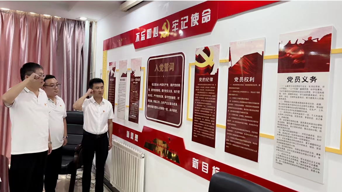 支部書記王傳波對(duì)李灝、劉波兩位同志表示衷心的祝賀并提出新的要求和期望,希望他們?cè)诮窈蟮墓ぷ骱蜕钪刑幪幰怨伯a(chǎn)黨員的標(biāo)準(zhǔn)嚴(yán)格要求自己,立足本職崗位創(chuàng)先爭(zhēng)優(yōu),充分發(fā)揮模范帶頭作用,以實(shí)際行動(dòng)為黨旗增添光彩;并帶領(lǐng)他們進(jìn)行了入黨宣誓。最后他強(qiáng)調(diào),全體黨員同志要不忘初心、砥礪奮進(jìn)、逐夢(mèng)前行,以最飽滿的熱情迎接黨的二十大勝利召開。