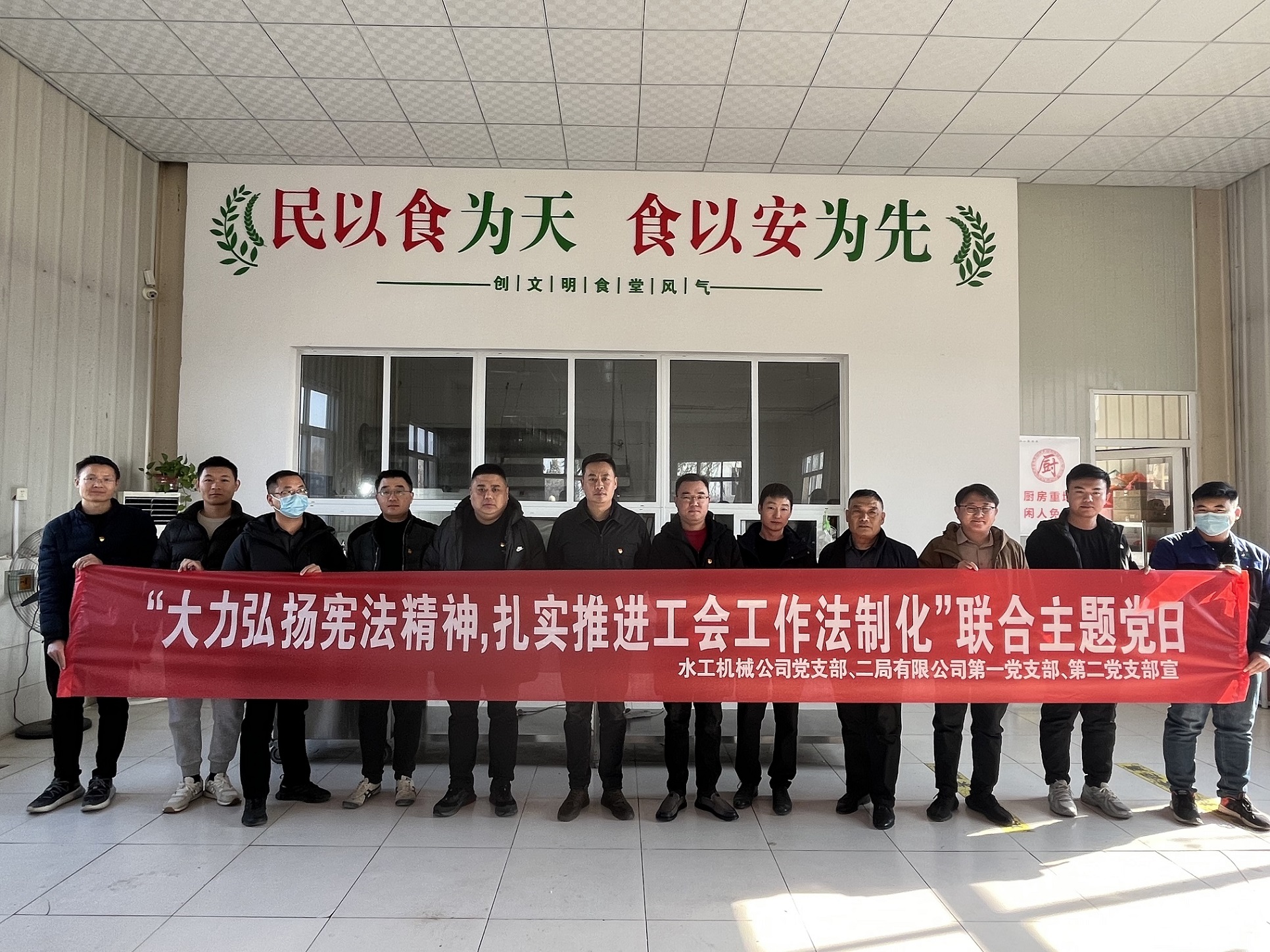 2023 年 12 月 4 日是第十個(gè)國家憲法日,為大力弘揚(yáng)憲法精神,進(jìn)一步營造尊法學(xué)法守法用法濃厚氛圍,增強(qiáng)黨員干部的憲法意識和黨性修養(yǎng)。12月4日,水工機(jī)械公司黨支部聯(lián)合二局有限公司第一黨支部、第二黨支部共同開展了“大力弘揚(yáng)憲法精神,扎實(shí)推進(jìn)工會工作法制化”聯(lián)合主題黨日活動。