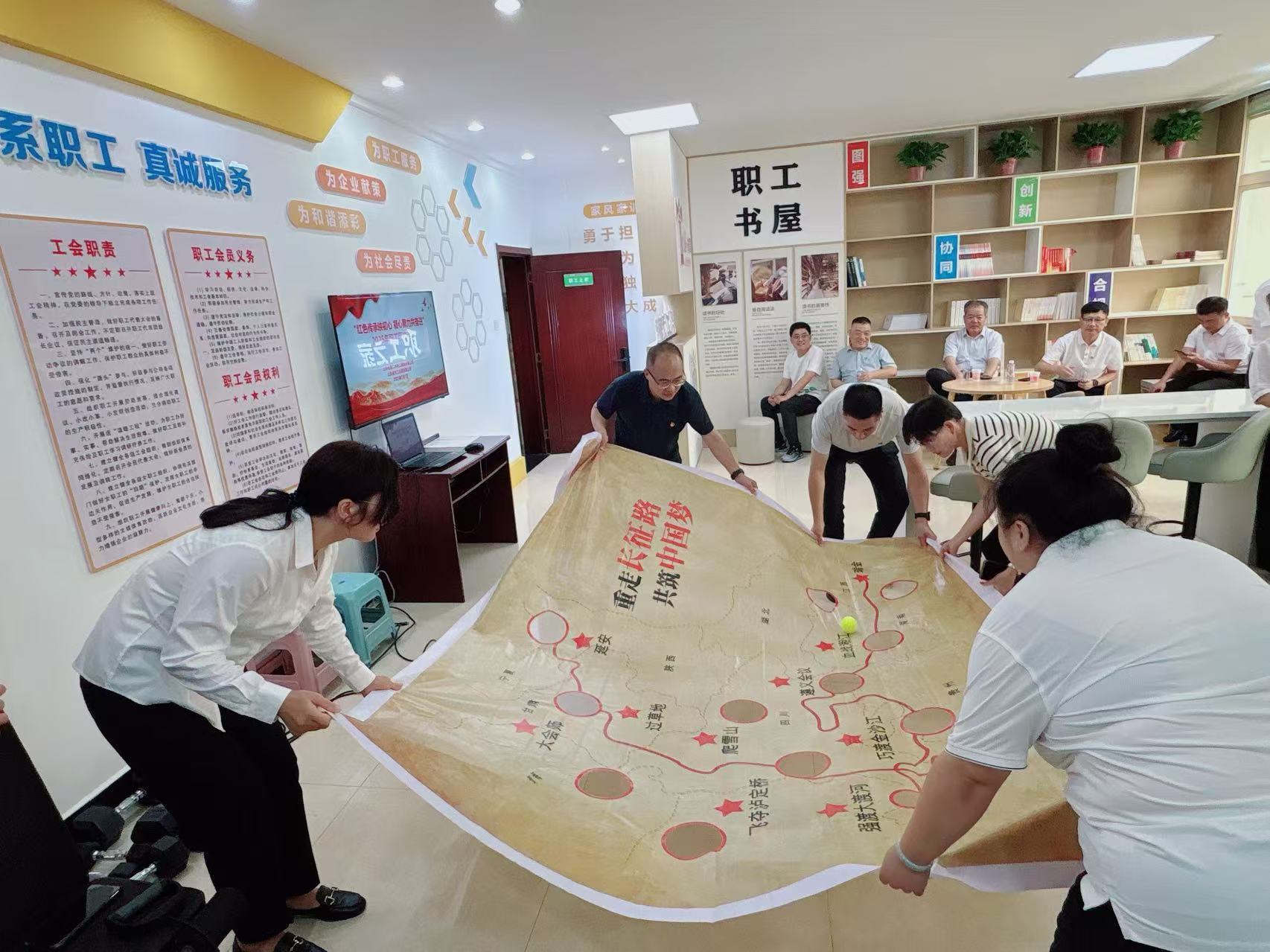 “踏尋長征印記,聚力闖關(guān)征途”環(huán)節(jié)以精心繪制的長征行軍路線圖為指引,帶領(lǐng)職工“重走”長征路。各小組爭分奪秒向“大會師”目標(biāo)進(jìn)發(fā),每通過一個關(guān)卡都仿佛觸摸到那段波瀾壯闊的歷史,在協(xié)作闖關(guān)的過程中,深刻感悟長征精神的偉大內(nèi)涵。